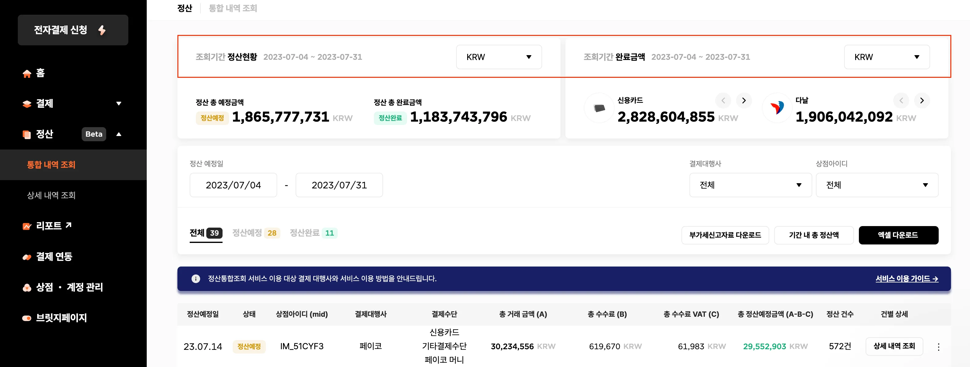 📍정산통합조회 서비스의 기능이 궁금하다면 → 서비스소개 보기